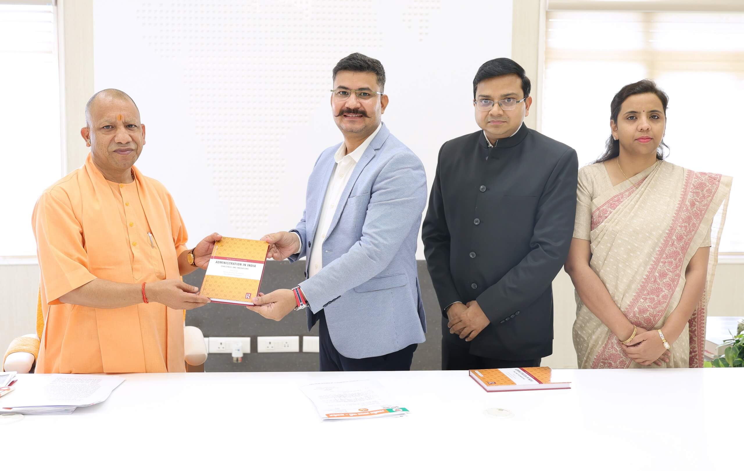 On May 9, 2025, in Lucknow, the first Indian edition of Administration in India: Challenges and Innovations was formally presented to the Hon’ble Chief Minister of Uttar Pradesh, Shri Yogi Adityanath Ji. The presentation was made by co-authors Dr. Ashish Kumar Srivastav, IAS, and IVA Ashish Srivastav, IAS, along with Mr. Shailesh Shahi from Routledge–Taylor & Francis, the global academic publisher. Mr. Shailesh Shahi highlighted how Taylor & Francis, through this publication, continues its mission to support impactful academic and professional work that bridges research and real-world application, strengthens institutional dialogue, and fosters innovation in governance at both national and global levels. The book explores India’s evolving governance framework, focusing on institutional structures, policy implementation, public service delivery, bureaucratic reforms, and citizen engagement—positioning itself as a vital resource for administrators, scholars, and policymakers.